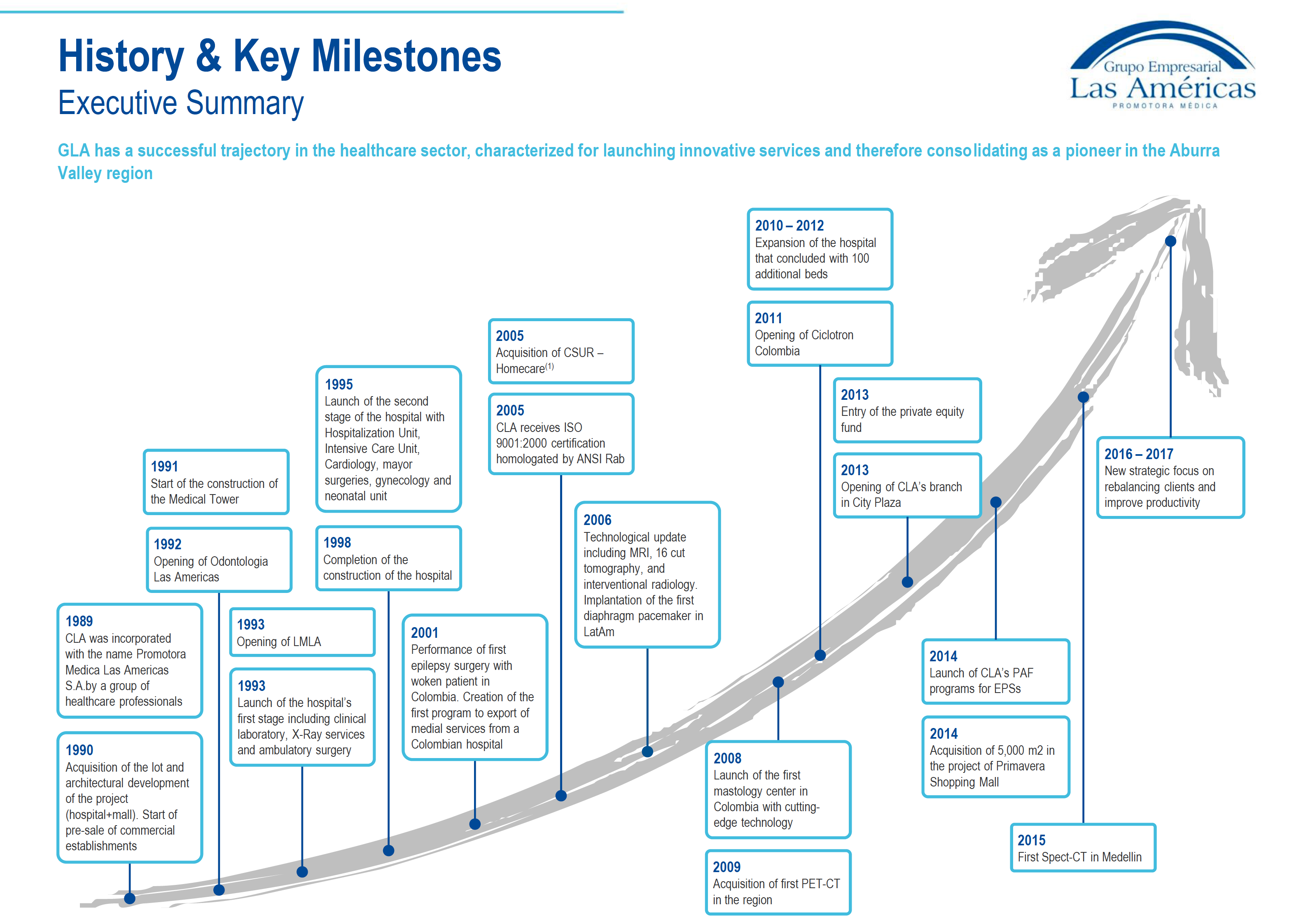 Currently, 9 legal independent companies, 2 clinics (one of them a high complexity clinic and the other with outpatient services) and one business unit form the corporate group.